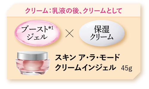 *1 角層への浸透を高める導入効果のこと *2 ジェルは金コロイドなど整肌成分、クリームはヒアルロン酸など保湿成分 *3 角層まで *4 年齢に応じたお手入れのこと