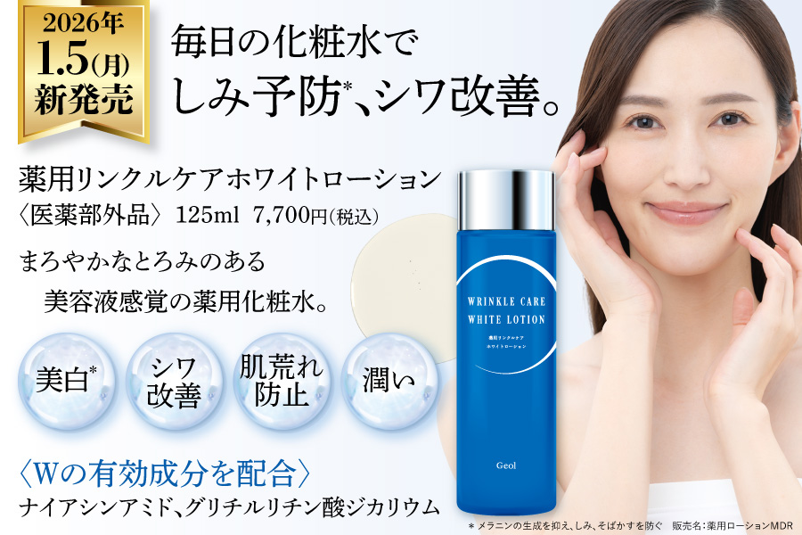 2026年1月5日(月)、ゲオール化粧品は、薬用リンクルケアホワイトローション〈医薬部外品〉を新発売いたします。