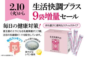 【生活快調プラス9袋増量セール】 生活快調プラスをご購入の方へ、9袋(3日分)を増量してお届けします。